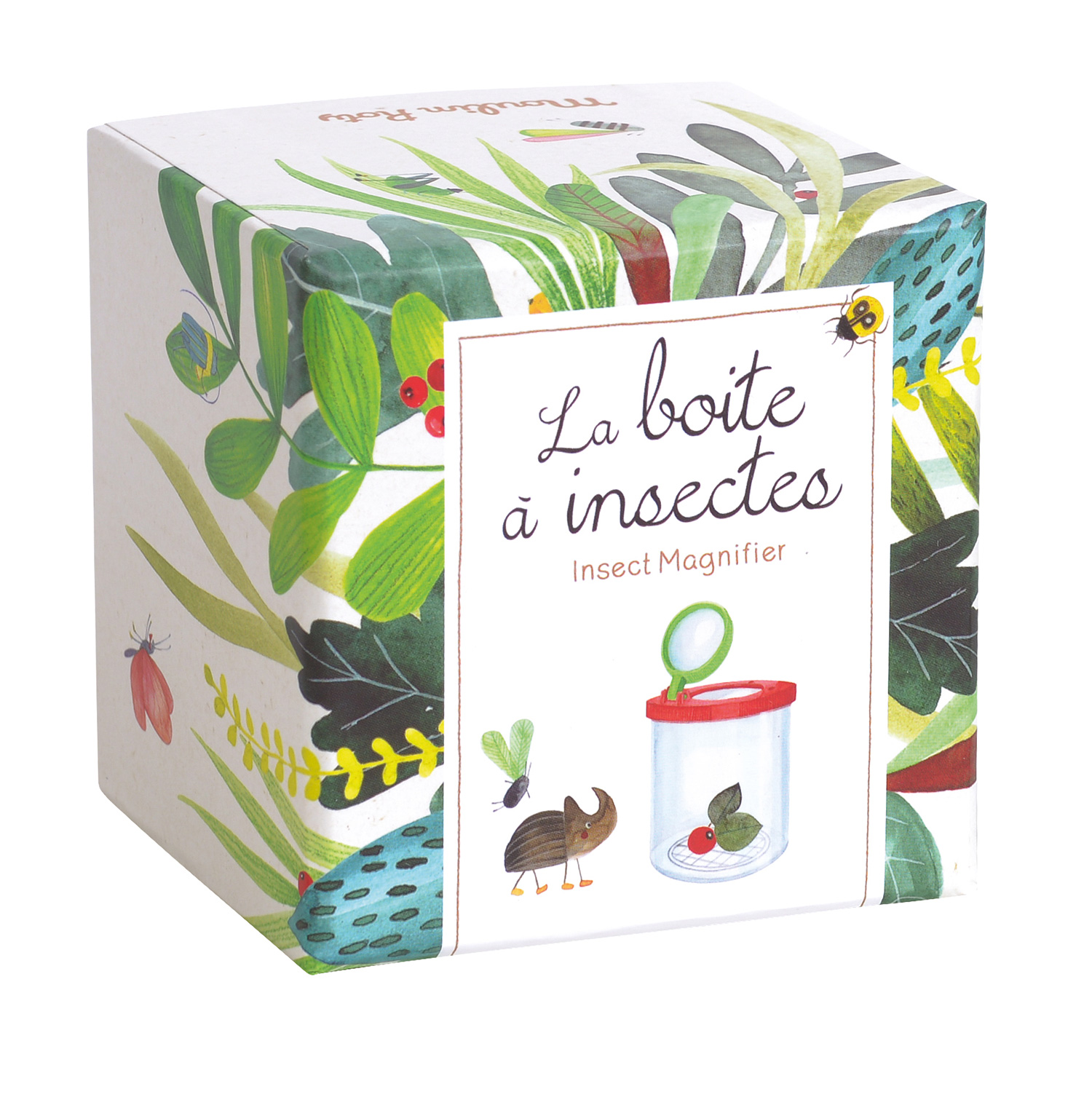 Dès 3 ans. Boîte à insectes avec couvercle loupe pour observer plantes ou insectes. Livré dans une jolie boite