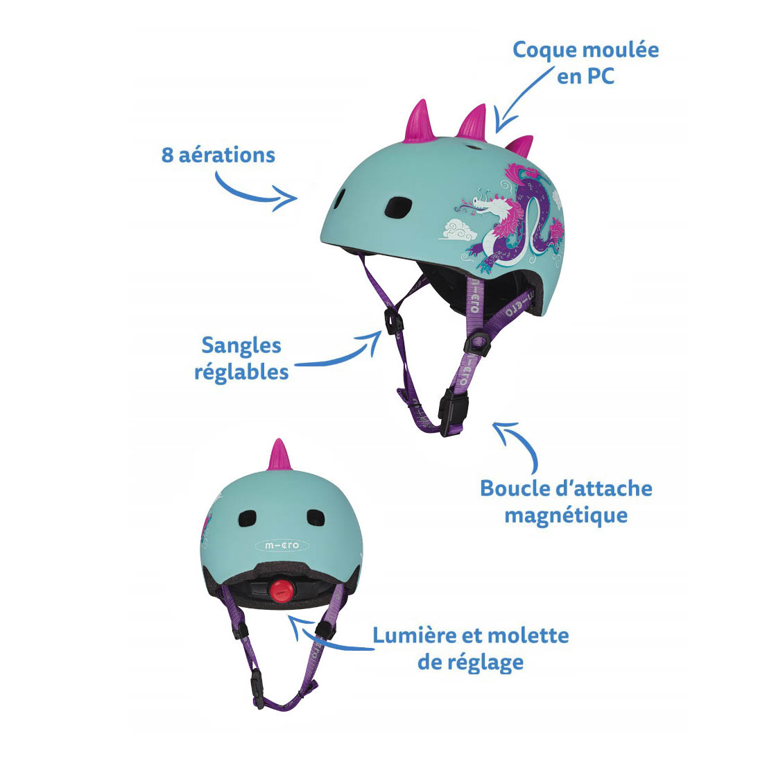 Le casque est un indispensable lors des déplacements à trottinette de vos enfants ! Véritable bouclier pour la tête, il est un accessoire essentiel. En 3D, il est ultra léger et répond à des normes de sécurité très strictes tout en étant confortable et design. Ce nouveau casque est équipé de 8 aérations pour un maximum de ventilation, la coque est moulée en un seul morceau pour garantir une plus grande sécurité. Nos casques s’ajustent parfaitement à la tête de vos enfants grâce aux sangles latérales et à la molette de réglage située à l’arrière de la tête et le système de fermeture du casque est une boucle magnétique, ce qui permet aux plus jeunes de mettre leurs casques et de les retirer facilement. Une lumière rouge clignotante située à l’arrière du casque permet d’augmenter la visibilité de l’enfant lorsqu’il fait sombre le soir.