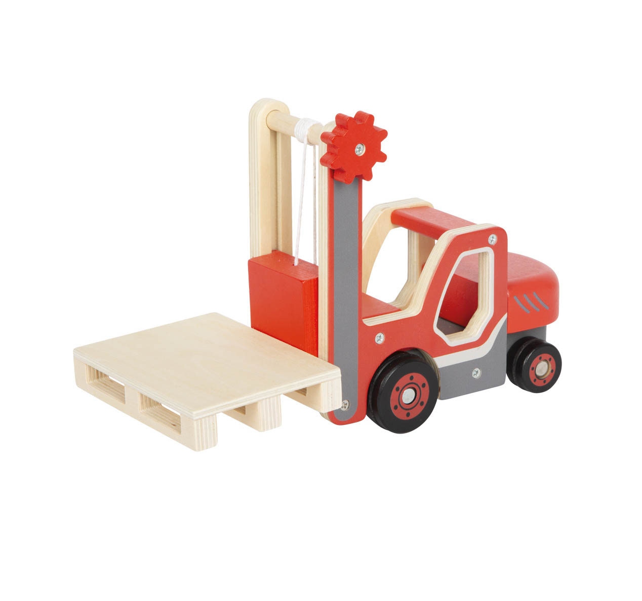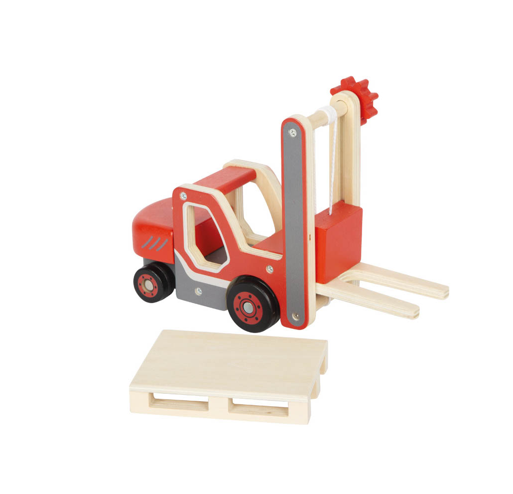 On craque sur ce chariot élévateur en bois stable pour les petits logisticiens, pour soulever et abaisser les charges avec sa petite palette en bois. Un jeu original pour stimuler la coordination œil-main et la créativité des enfants.