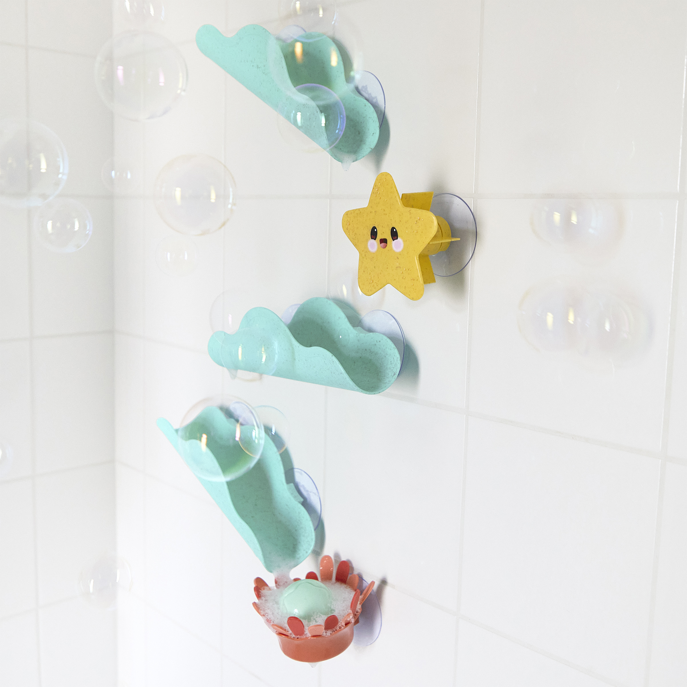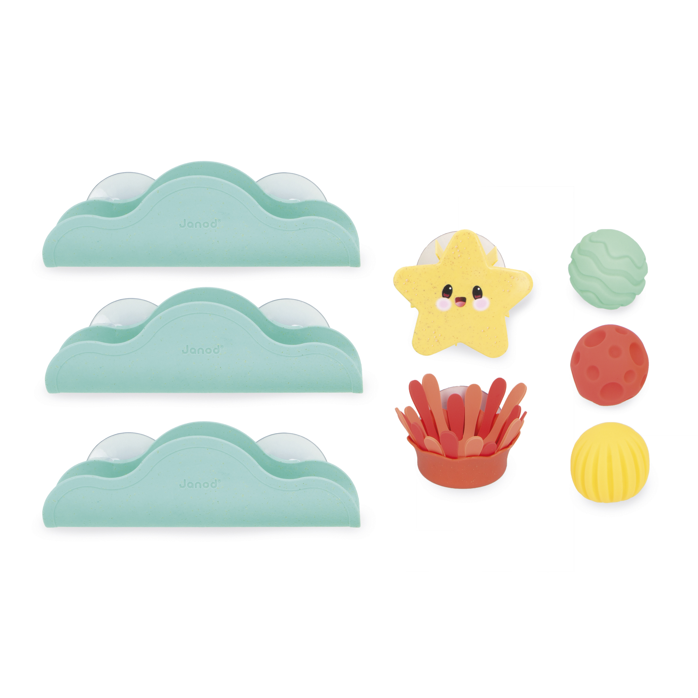 Avec ce circuit de bain marin, les enfants et même les plus grands se divertissent à l’heure de se laver. Composé de 3 toboggans, de 3 balles sensorielles, d’une étoile de mer rotative et d’une anémone de mer, ce jouet de bain se fixe à la faïence de la salle de bain grâce à des ventouses. Dans la baignoire ou la douche, les enfants créent un véritable parcours vertical où les balles dévalent et actionnent les différents éléments. Elles suivent le circuit, font tourner l’étoile de mer, avant de finir leur course dans l’anémone … ou dans l’eau !