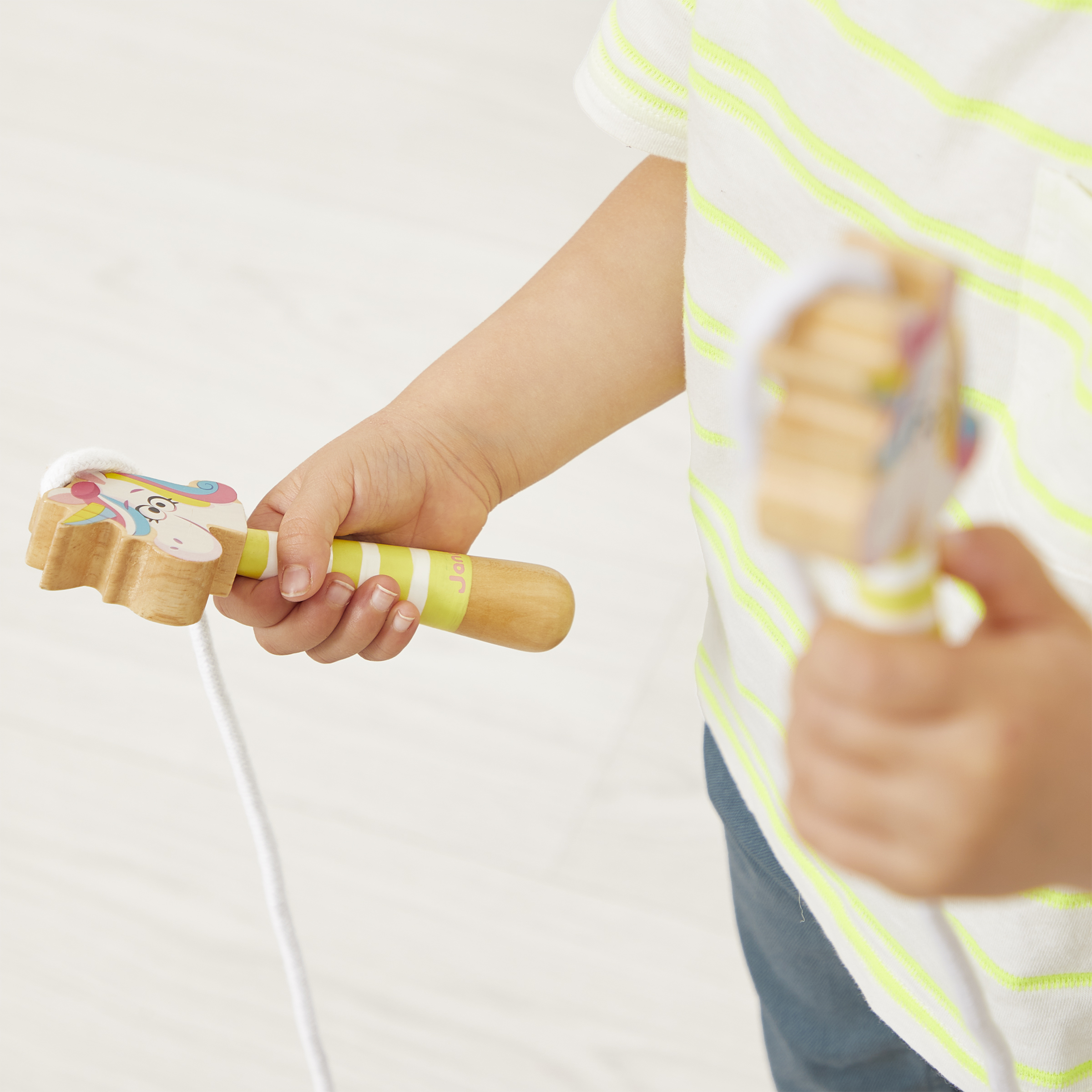 Cette jolie corde à sauter permet à votre enfant de se dépenser en s’amusant en bonne compagnie. Avec ses poignées solides en bois de hêtre, on pourra s’amuser pendant des heures ! Passez du temps dehors avec votre enfant et profitez d’un moment avec les petits et les grands… Jeu d’extérieur incontournable, cette corde à sauter en bois est synonyme de mouvement et de légèreté ! À l’intérieur comme à l’extérieur, les enfants développent leur coordination pour sautiller avec joie.