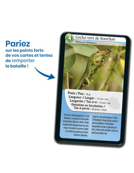 Apprenez à connaître les animaux et leurs particularités, puis misez sur leurs points forts pour remporter les cartes de vos adversaires. Le joueur qui parvient à collecter toutes les cartes gagne la partie.