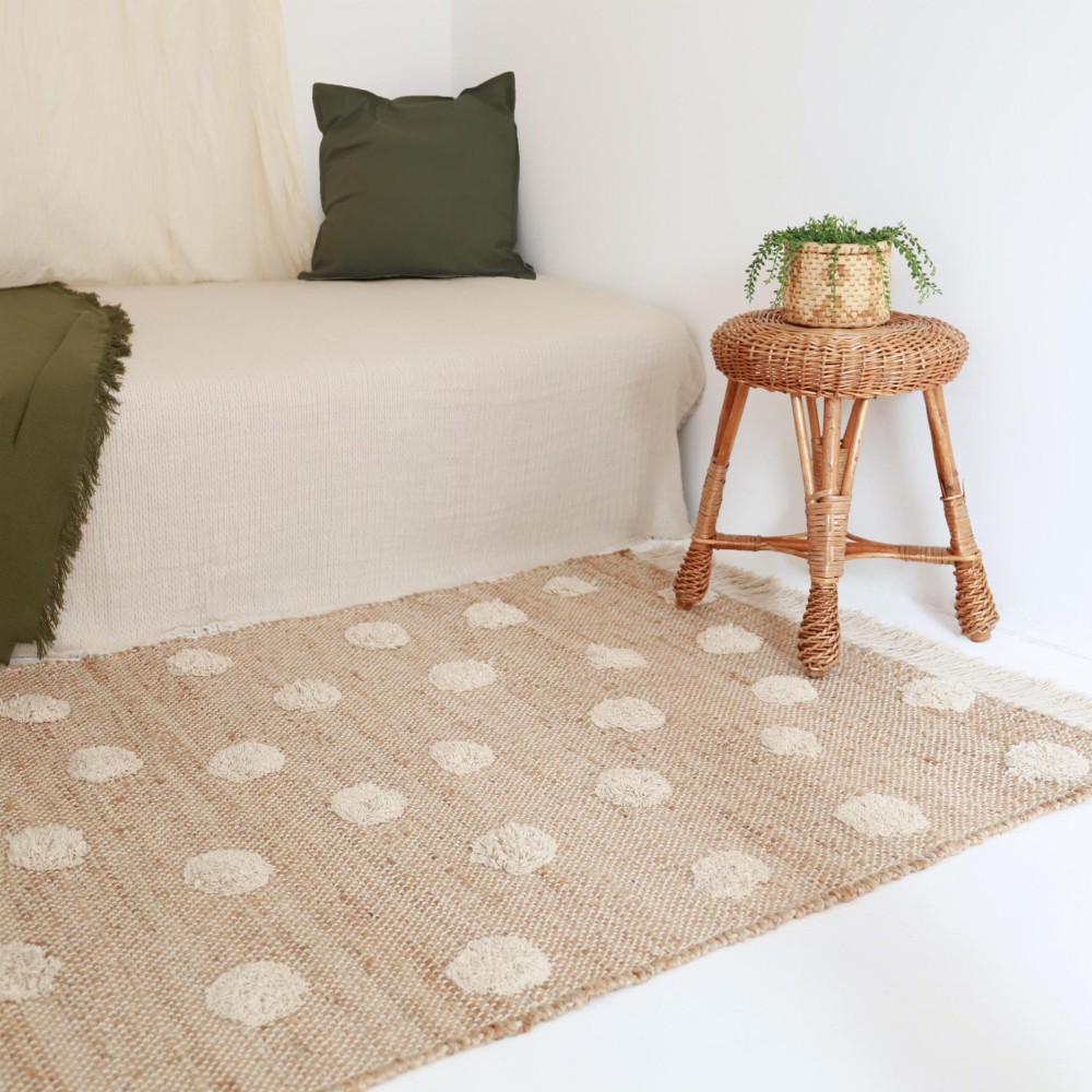 Apportez une touche naturelle et chaleureuse à la chambre de votre enfant avec le tapis Coton & Jute Nop !. Son mélange de jute authentique et de coton doux crée un équilibre parfait entre style et confort, idéal pour un espace cocooning où votre enfant aime jouer et se détendre.
