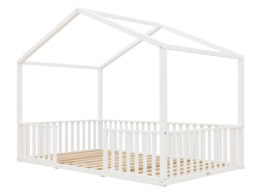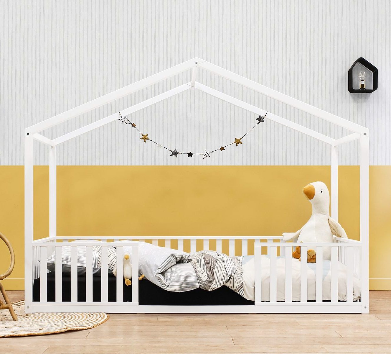 Lit 90×200 cabane au sol avec barrière de sécurité