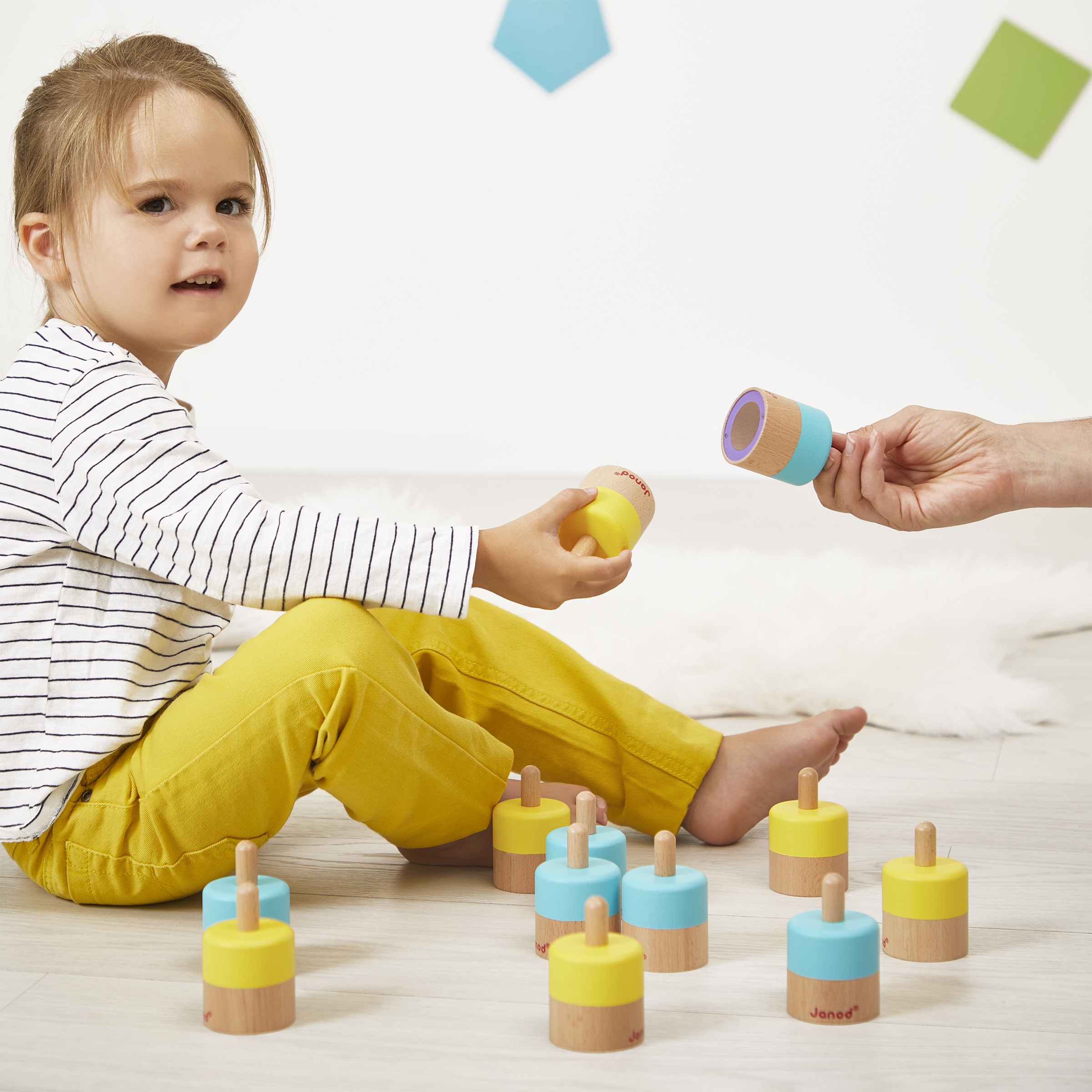 L’objectif est simple et permet de stimuler l’ouïe des enfants : recomposer 6 paires produisant le même son. Au total, il y a donc 12 pièces dans le jeu, et 6 sons différents à associer. Pour cela, on agite les pièces et on tend l’oreille avec attention ! Les enfants peuvent jouer seuls ou en compétition à tour de rôle, comme pour un jeu de mémo standard. Malin, chaque paire se compose d’une pièce jaune et d’une pièce bleue. Il y a même un système d’auto-correction : il suffit de regarder le cercle de couleur sous les pièces pour vérifier si elles correspondent ! Grâce à ce jeu de mémo, les enfants se concentrent et jouent dans le calme : c’est indispensable pour remporter la partie ! Ils développent leur capacité d’association et leur audition, tout en s’amusant.