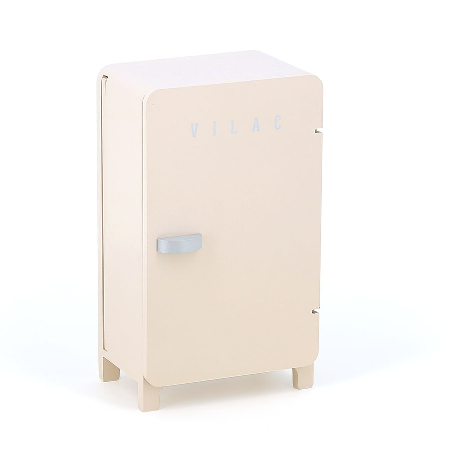 Au retour des courses, il est l’heure de ranger ! Ouvrez la porte du frigo en bois, et amusez-vous à le remplir.