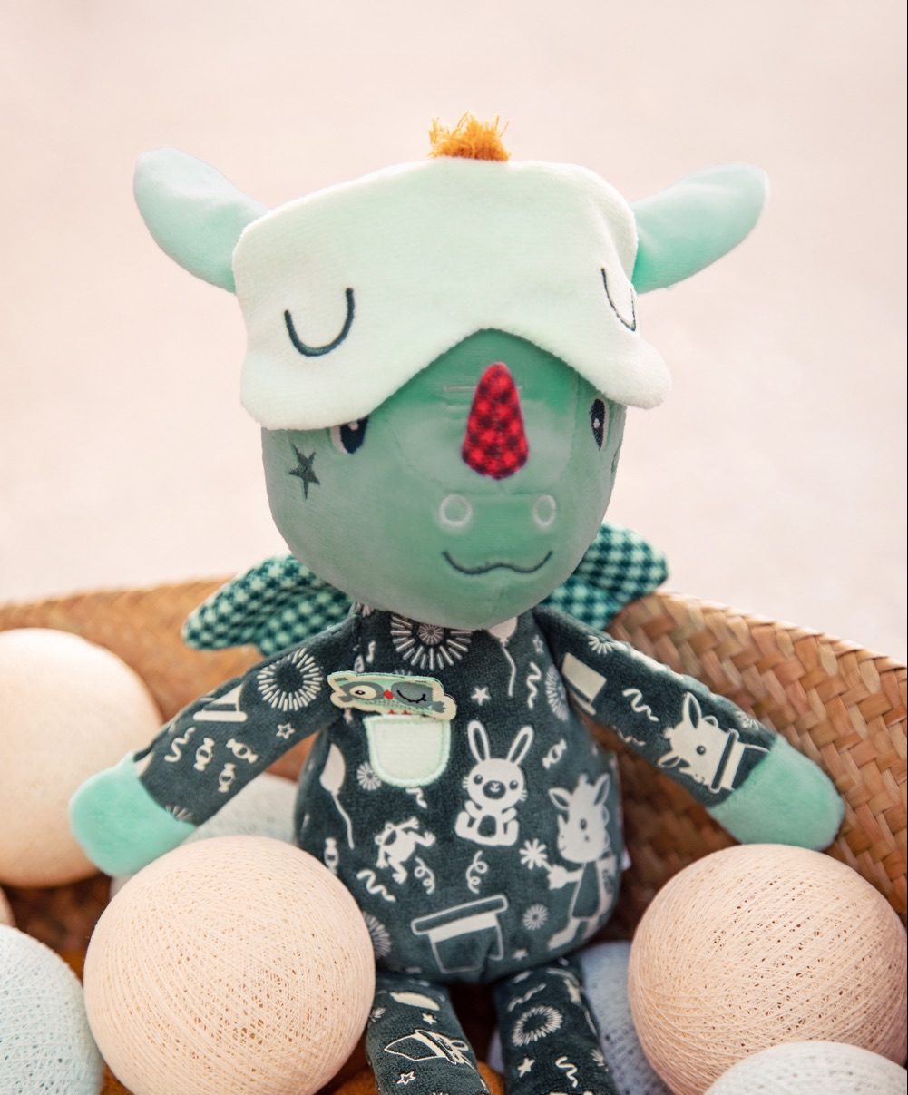 Tout doux et vêtu de son joli pyjama vert assorti à son masque de nuit, Joe accompagne les tout-petits au moment du dodo. Phosphorescente, sa tenue s’illumine dans le noir pour rassurer l’enfant et stimuler son imagination. Avec sa frimousse amicale, sa chouette compagne et ses motifs qui racontent une histoire magique, Joe est le compagnon idéal pour les soirées et les siestes pleines de tendresse.