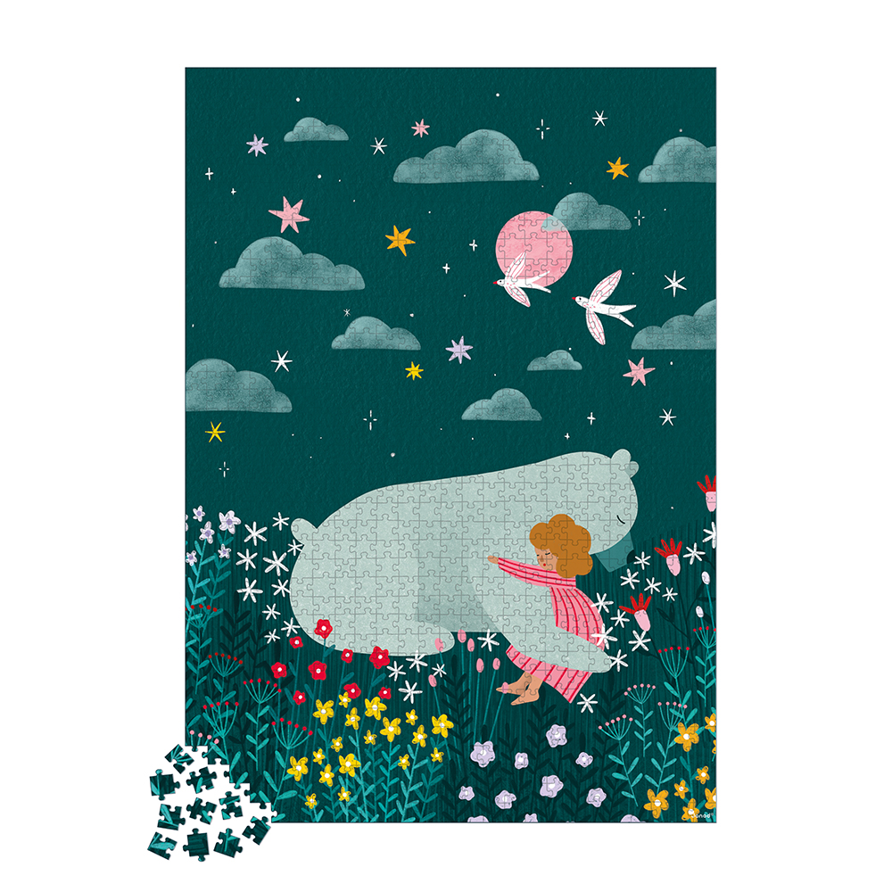 Plongez dans une scène magique où une fillette et son ami l’ours partagent une étreinte sous le ciel étoilé, au cœur d’une clairière fleurie. Conçu pour les enfants dès 8 ans et leurs parents, ce puzzle sur le thème de l’amitié transforme chaque pièce en une étape de complicité et de concentration. En assemblant les pièces, petits et grands découvrent peu à peu la douceur et la chaleur de cette scène apaisante, tout en stimulant leur patience et leur sens de la réflexion.