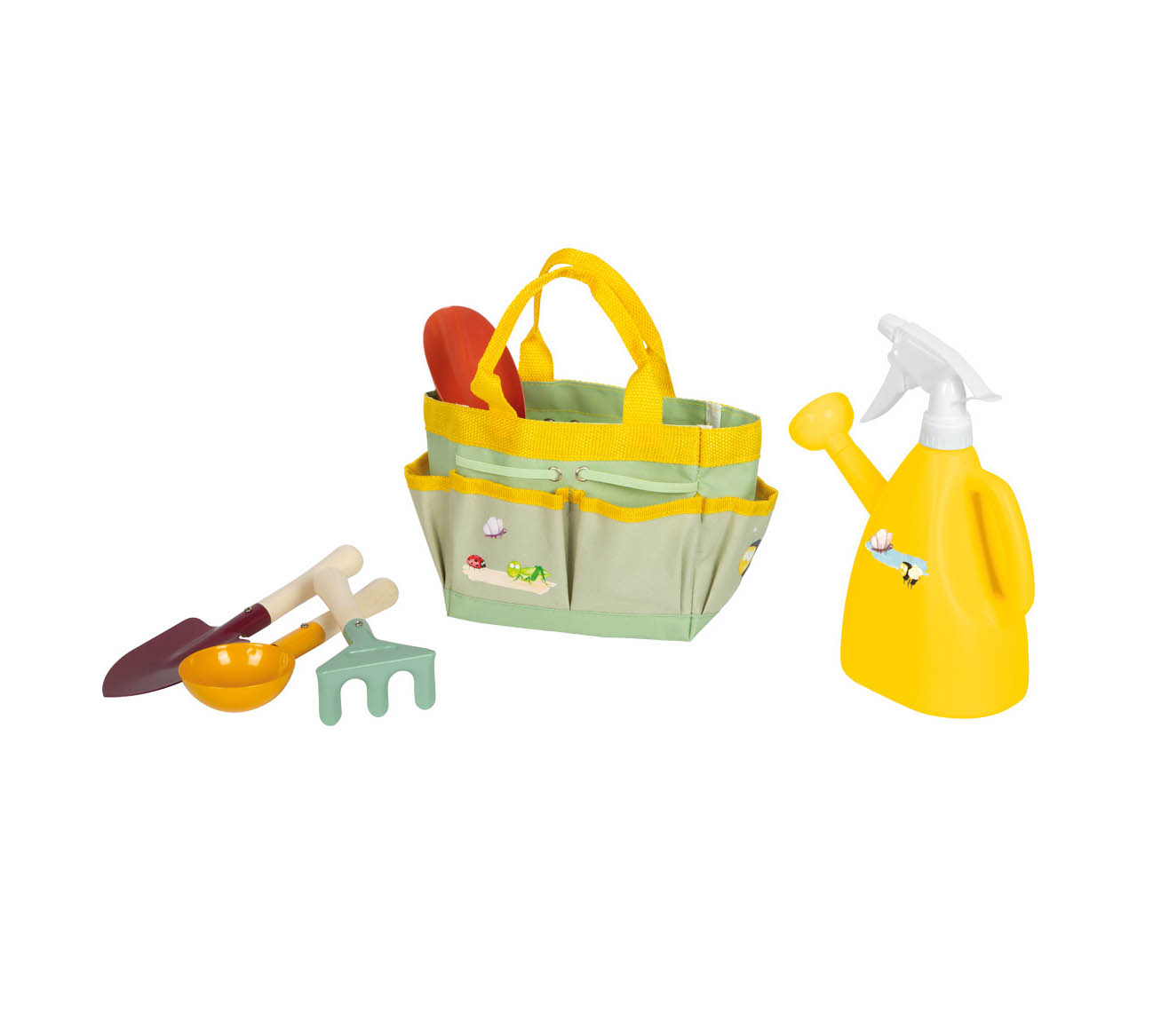 Voila un bel ensemble de jardinage pour jouer dans le jardin et pour planter tous ce qui t’amuse !