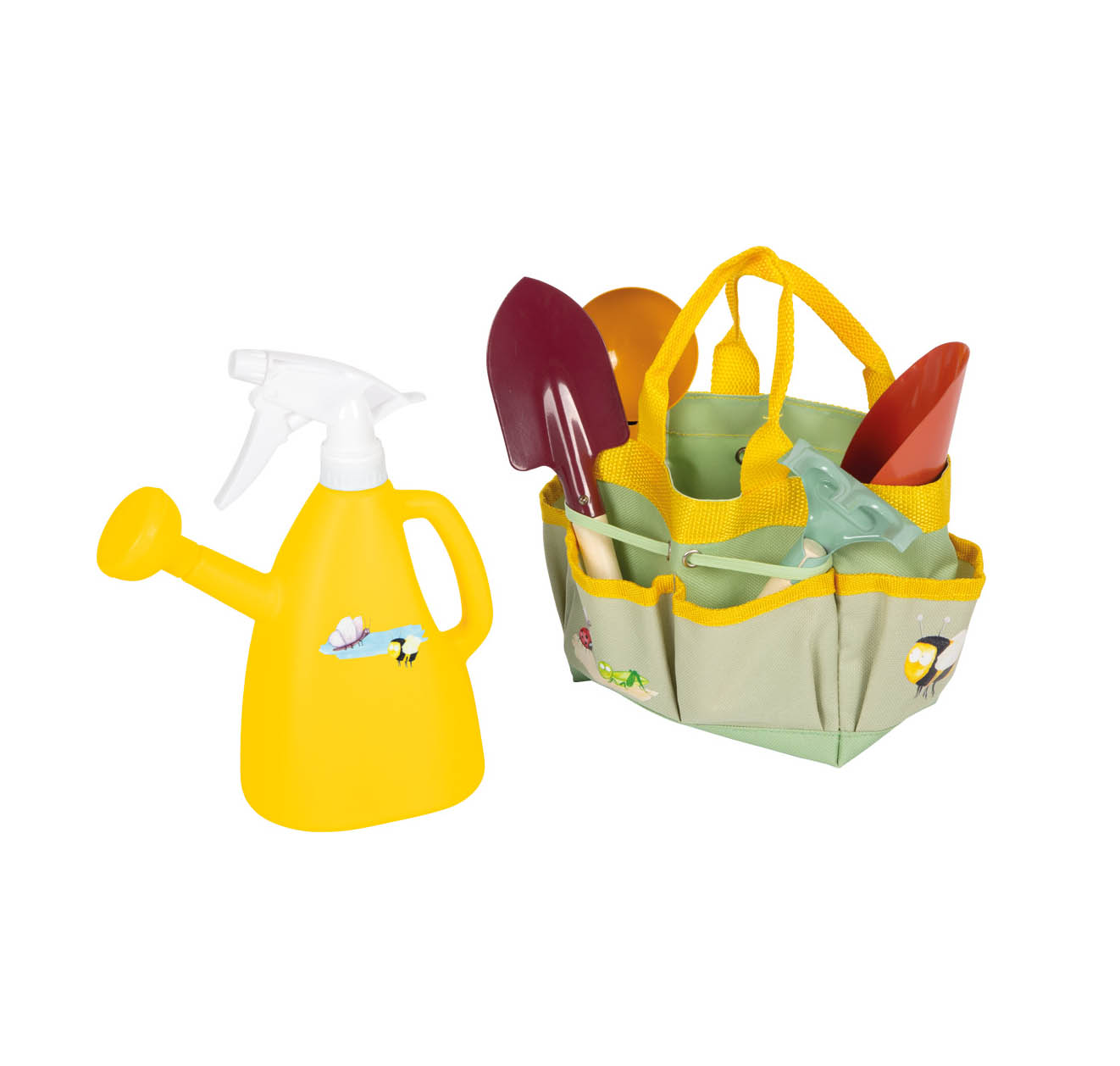 Dès 3 ans. Le sac de jardinier contient 5 outils de jardinage pratiques (4 pelles et un arrosoir/vaporisateur 2 en 1)