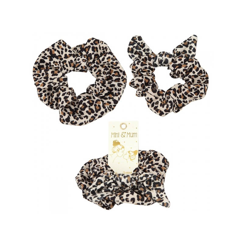 Élastique à cheveux pour mère et fille : un grand scrunchie et un scrunchie plus petit avec de petites oreilles.