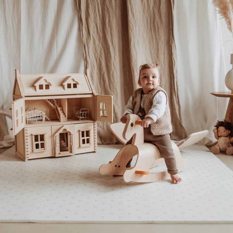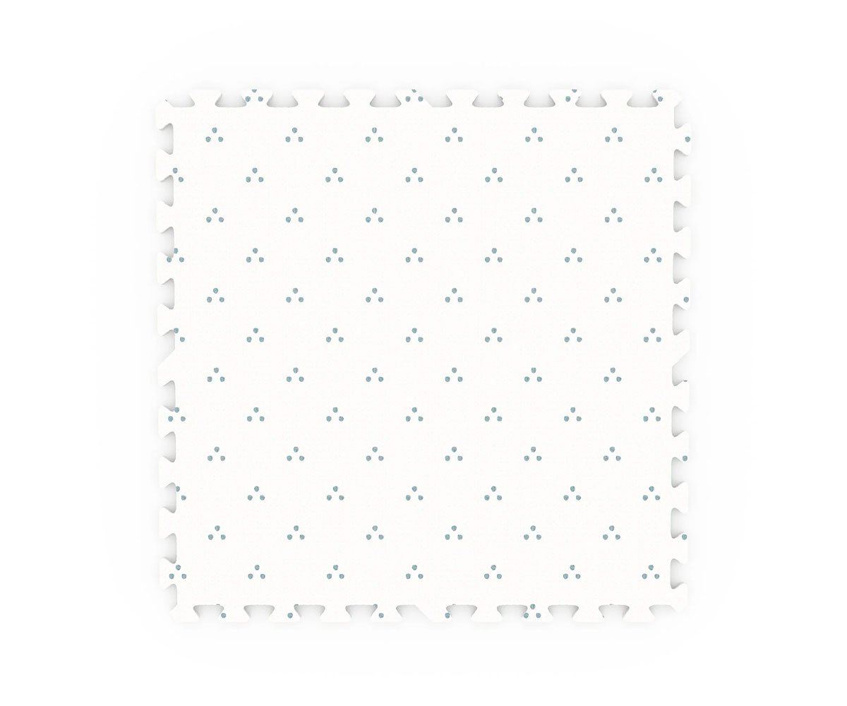 Réversible, on apprécie ses graphismes ludiques des chiffres d’un côté et son motif à pois de l’autre. De plus, il est léger et facile à transporter. Les petites pièces de contour incluses permettent de créer une bordure lisse pour la version tapis.