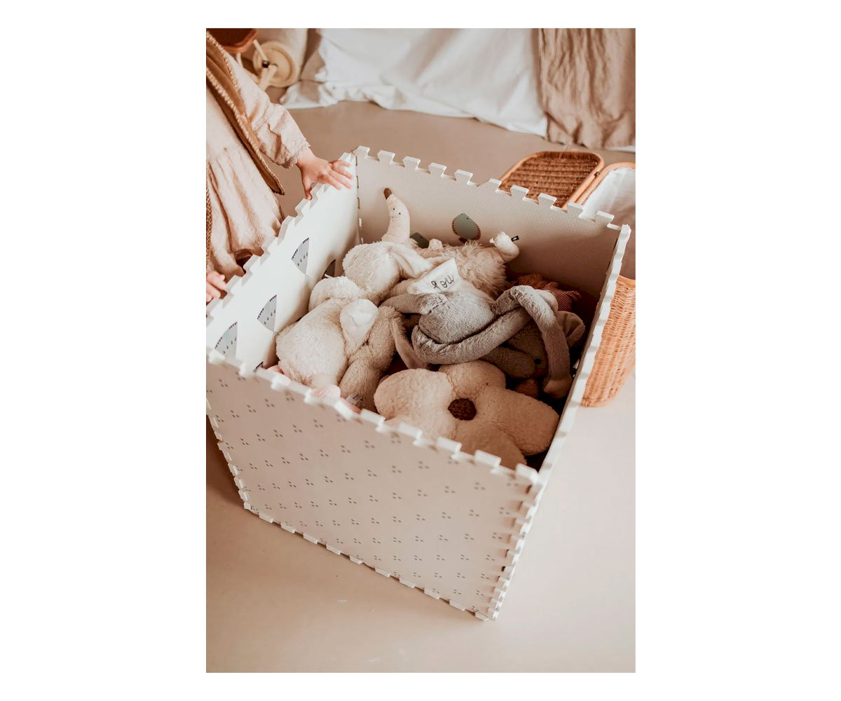 À la fois un tapis en mousse confortable et moelleux qui s’assemble comme un puzzle, il peut également prendre la forme d’une boîte de rangement ou prendre d’autres formes selon l’imagination des enfants.