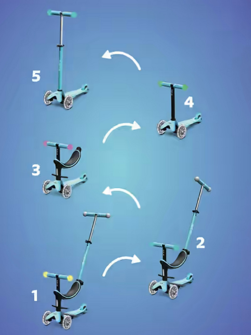 • 3 modes : porteur, draisienne et trottinette 3 roues